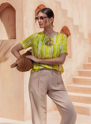 BLUSA VISCO LAÇO ESTAMPA LISTRAS